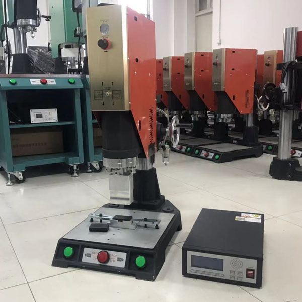 超聲波焊接機的焊頭是將機械振動能直接傳輸至需壓合產品的一種聲學裝置,振動通過焊接工作件傳給粘合面振動磨擦產生熱能使塑膠熔化,振動會在熔融狀態物質到達其介面時停止,短暫保持壓力可以使熔化物在粘合面固化時產生個強分子鍵,整個周期通常是不到一秒種便完成,但是其焊接強度卻接近是一塊連著的材料。